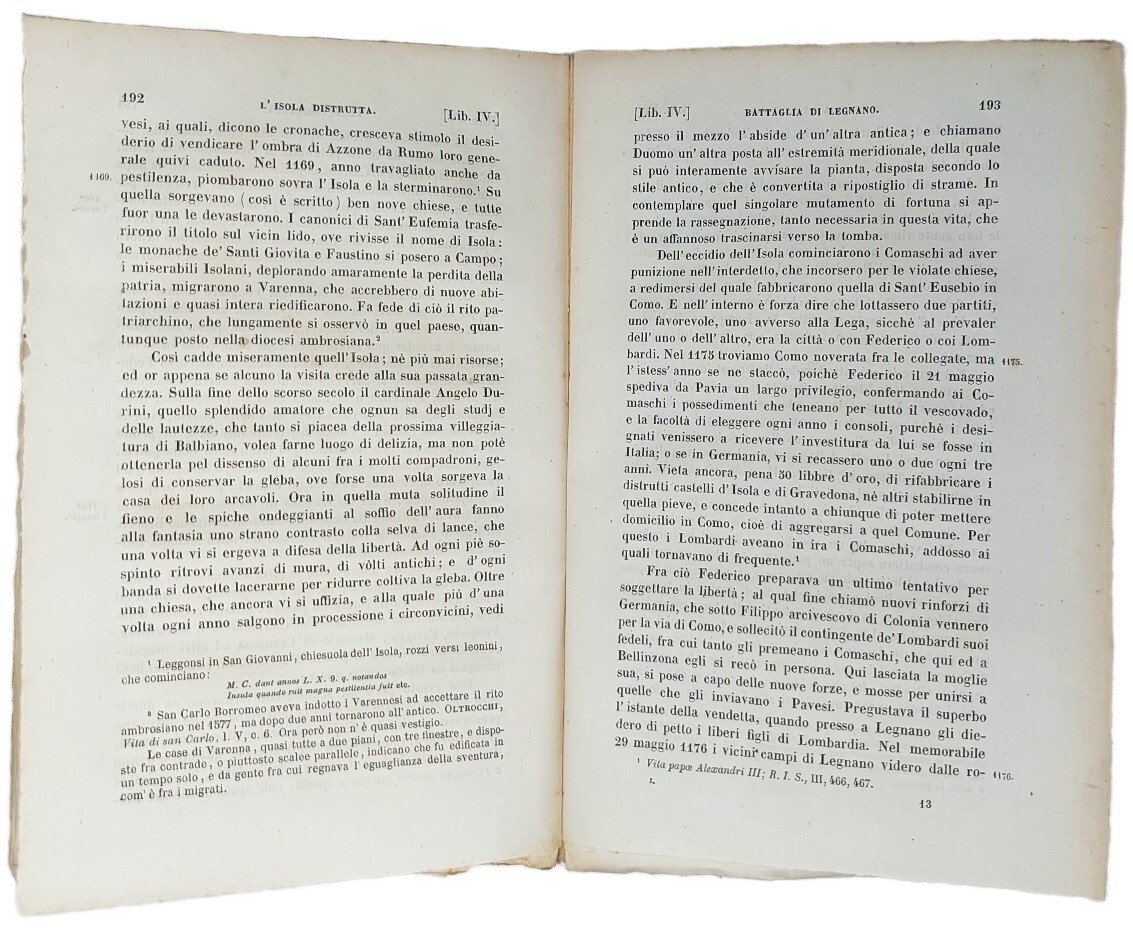 >2 vol. in-8, pp. (4), VIII, 461; (4), 447, (1), brossure editoriali; entro astuccio in tela verde. Edizione ampliata e migliorata rispetto alla prima del 1829, con una nuova prefazione dell'autore. Si tratta del "frutto maggiore" del periodo trascorso dal Cantù a Como. Pur improntata a quella precedente di Carlo Revelli, l'opera ha "un ambito territoriale più esteso perché include tutta la diocesi comasca e quindi anche la Valtellina e il Ticino" (DBIt., vol. 18, p. 337). Esemplare molto bello, perfetto con barbe, raro da trovare nella brossura originale. Lozzi 1294: « Questa edizione...vale assai più della prima». Andreani 100.