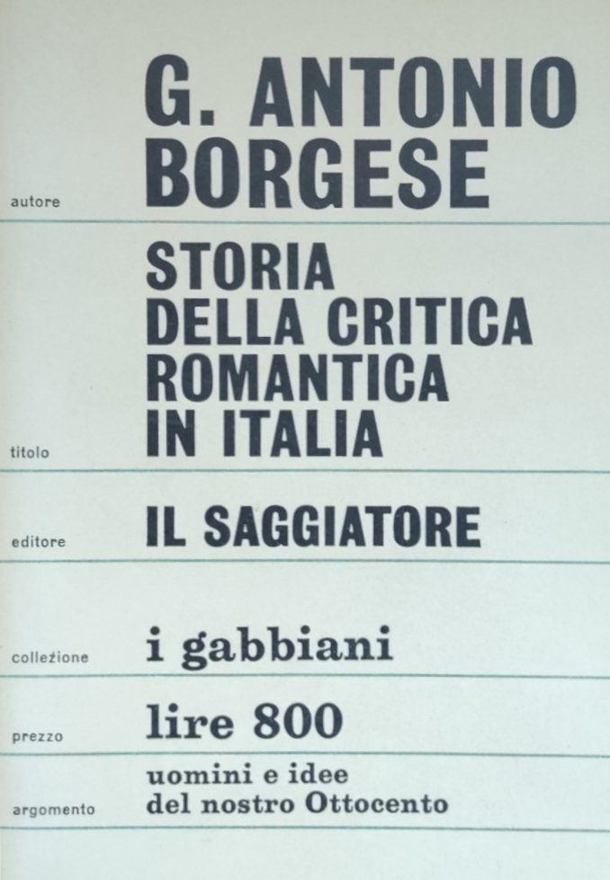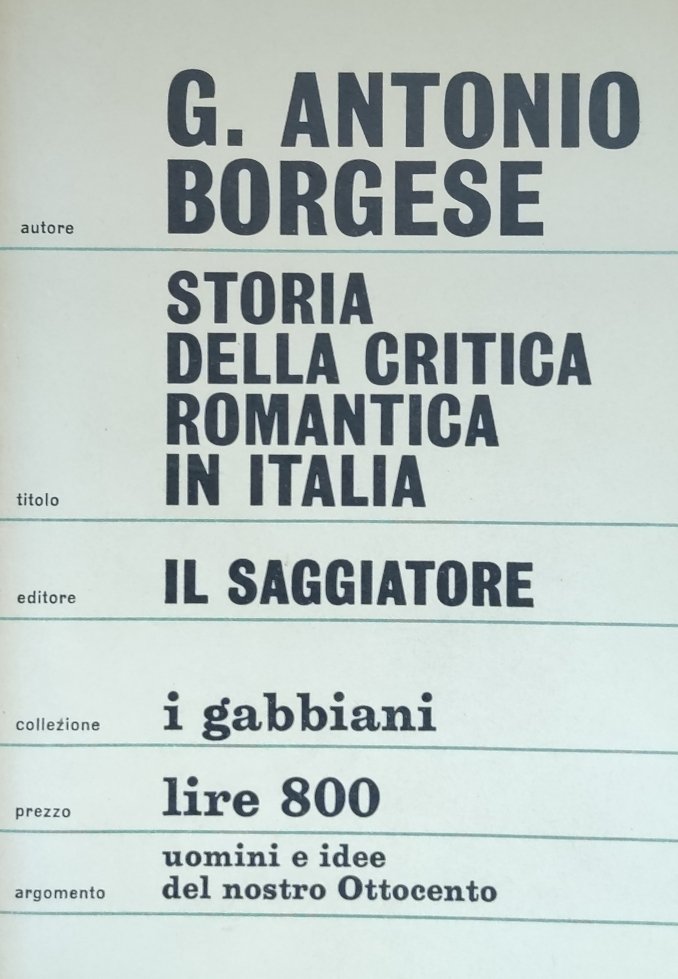 STORIA DELLA CRITICA ROMANTICA IN ITALIA | Libri antichi e moderni | BORGESE G. ANTONIO, ,BORGESE G. ANTONIO