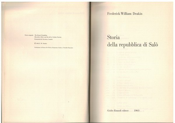 Storia della repubblica di Salò | Libri antichi e moderni | Frederick William Deakin