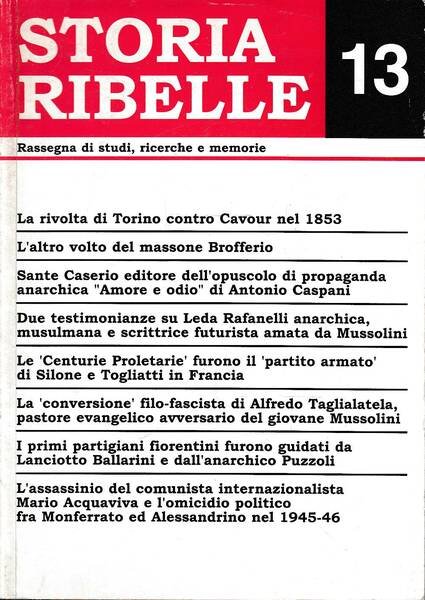 Storia ribelle 13. Rassegna di studi, ricerche e memorie | Libri antichi e moderni |