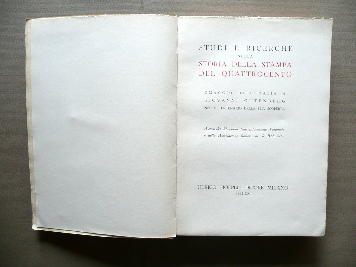 Studi e Ricerche sulla Storia della Stampa del Quattrocento Hoepli Milano 1942 | Libri antichi e moderni |