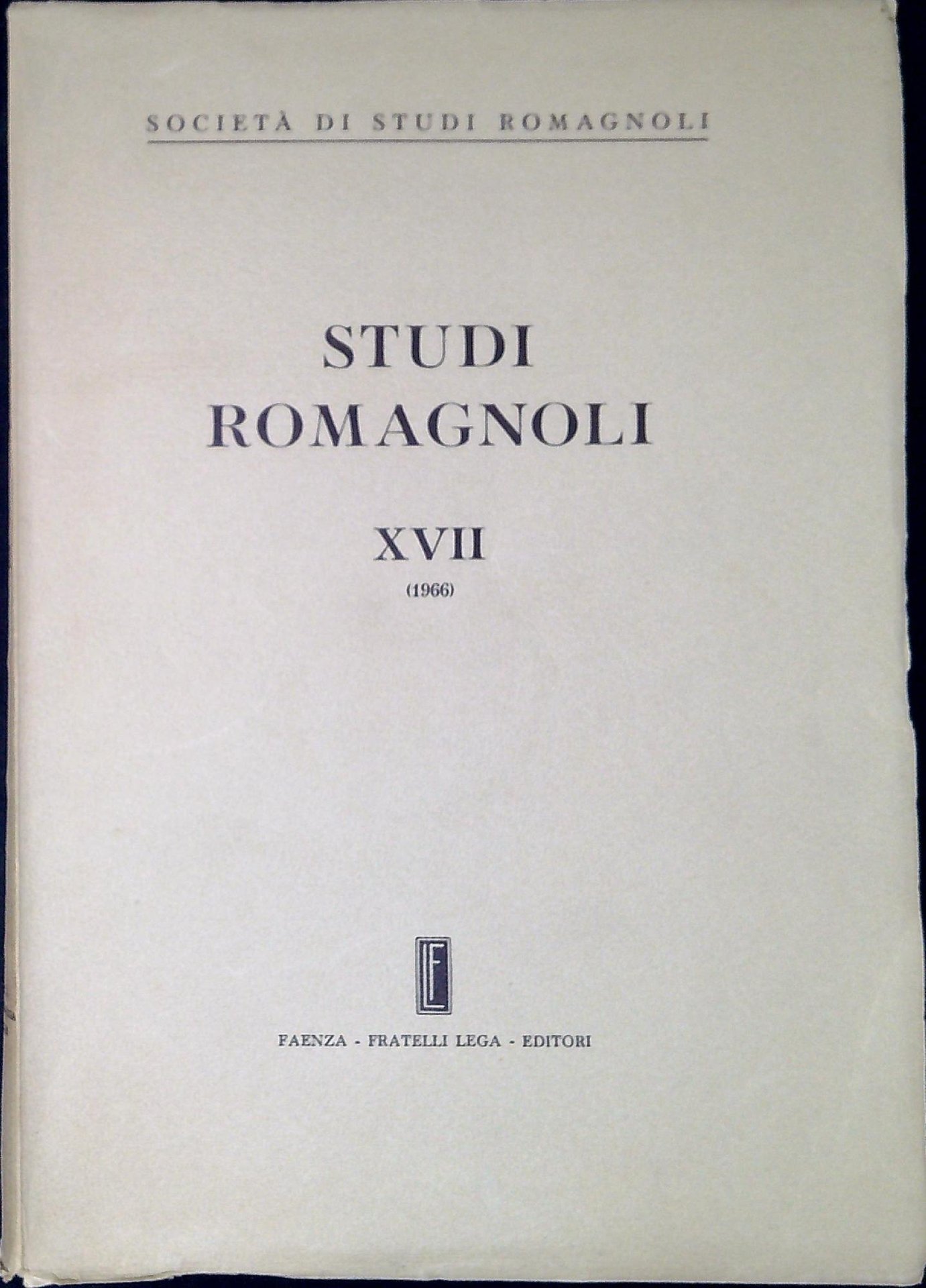 AA.VV. Studi romagnoli XVII (1966). Faenza, Fratelli lega 1968, 25 364 p. (48589)