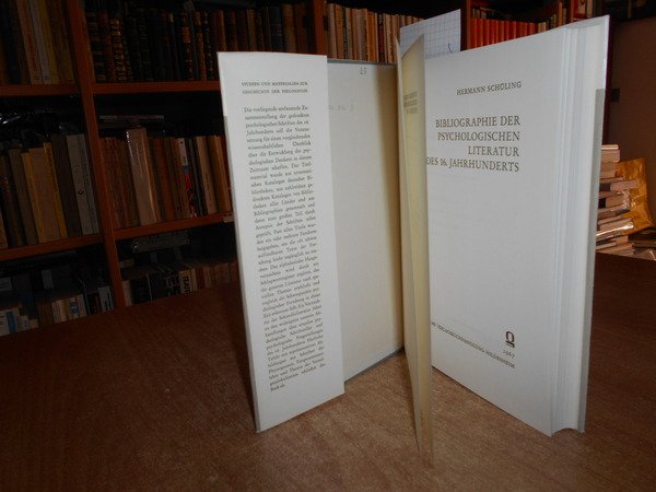 HERMANN SCHULING. Hildesheim, Georg Olmsd Verlagsbuchhandlung, 1967. Studien und Materialien zur Geschichte der Philosophie. Bibliographie der Psychologischen Literatur des 16. Jahrhunderts. In-8°, tela edit. con titolo in oro entro tassello al dorso, sovracopertina. 301 pp. con 15 tavole f.t. Ottimo esemplare. Uff. D - II - 1