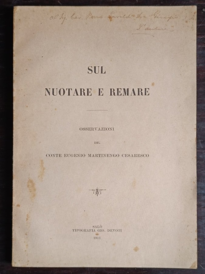 Sul nuotare e remare. Osservazioni. | Libri antichi e moderni | Martinengo Cesaresco Eugenio.