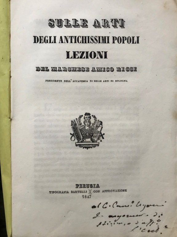 Sulle arti degli antichissimi popoli. Lezioni. | Libri antichi e moderni | Ricci Amico.