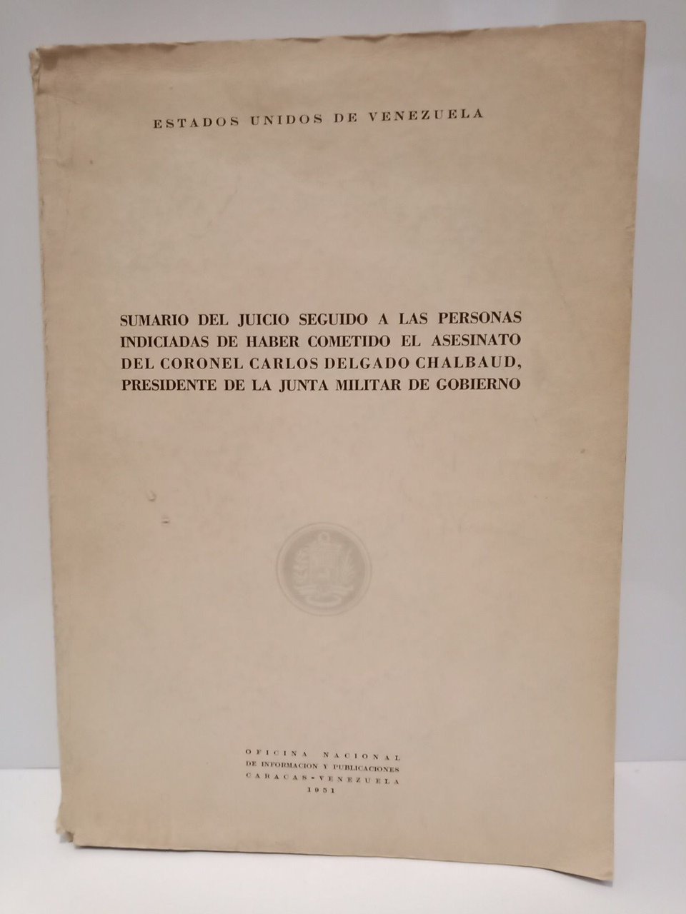 Sumario del juicio seguido a las personas indicadas de haber cometido el asesinato del Coronel Carlos Delgado Chalbaud, Presidente de la Junta Militar de Gobierno | Libri antichi e moderni | Estados Unidos De Venezuela