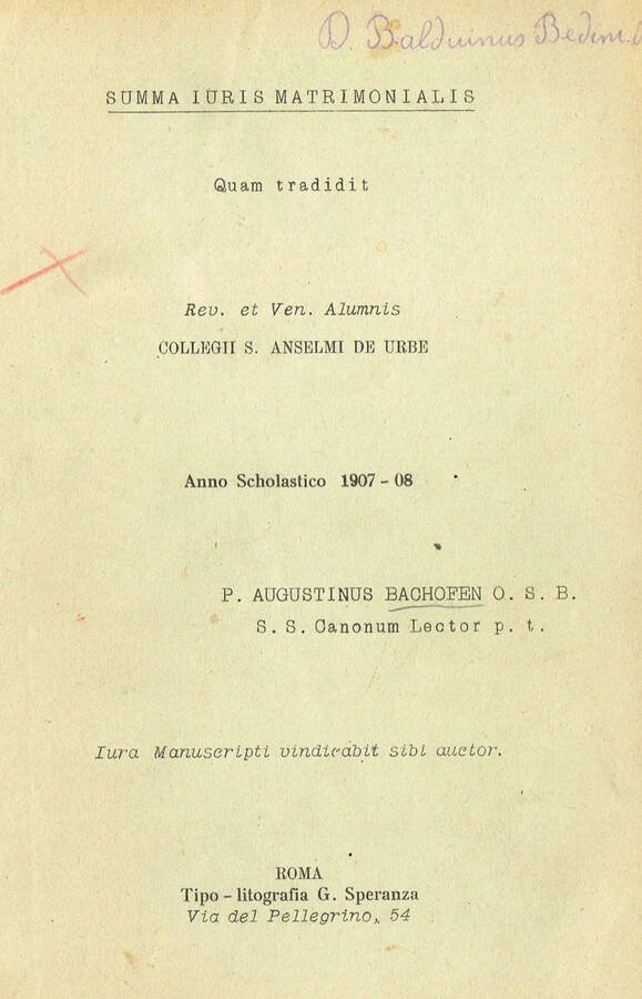 SUMMA IURIS MATRIMONIALIS | Libri antichi e moderni | Augustinus Bachofen