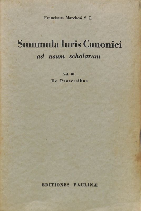 Summula Iuris Canonici ad usum scholarum. Vol. III. De Processibus | Libri antichi e moderni |