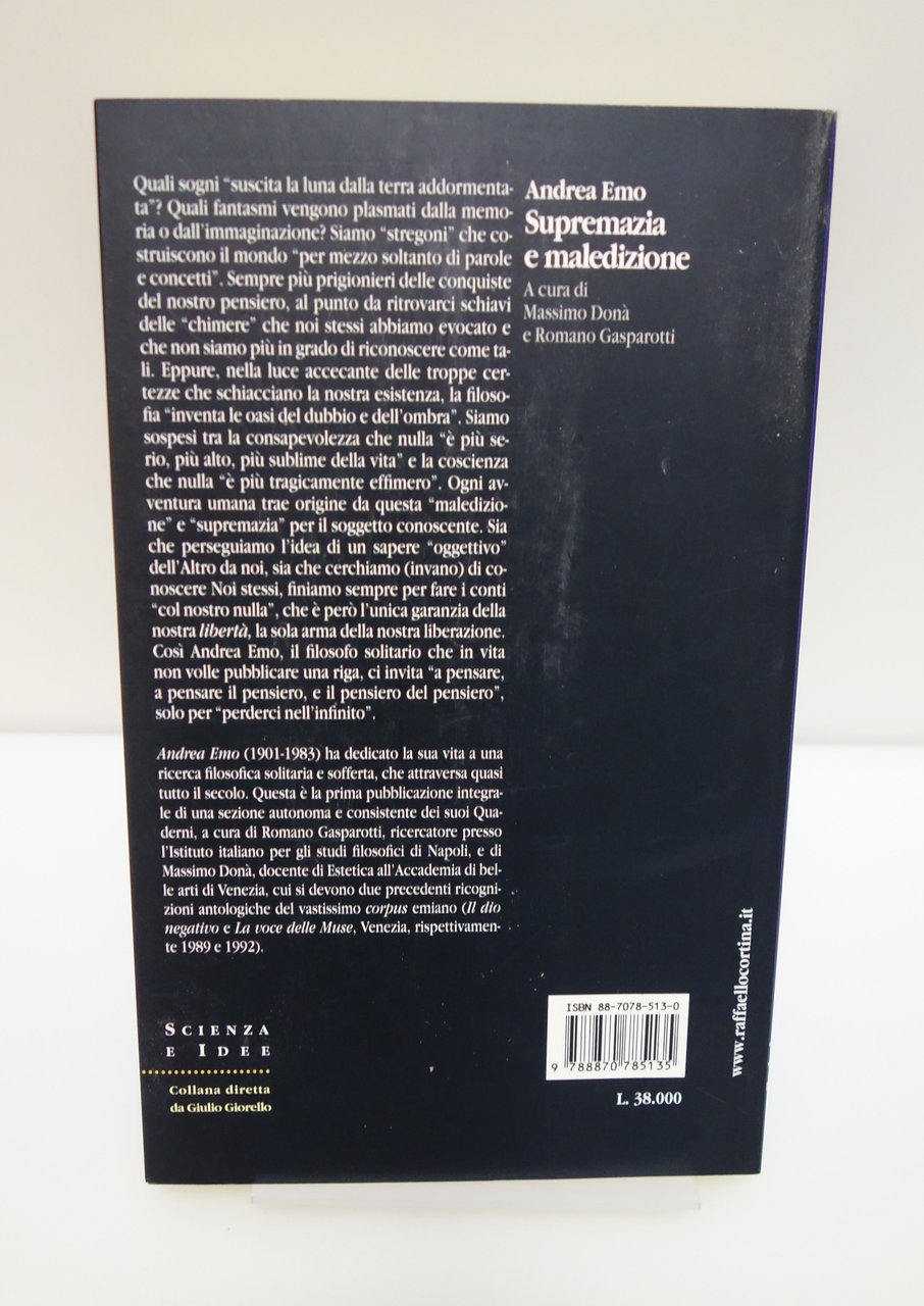 SUPREMAZIA E MALEDIZIONE DIARIO FILOSOFICO 1973 ANDREA EMO RAFFAELLO CORTINA ED. | Libri antichi e moderni |