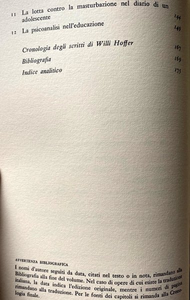 Soggetti: Psicologia dell'età evolutiva, Psichiatria, Psicoanalisi infantile, Libri universitari, Scienze sociali, Educazione, Biologia, Psicologia biologica, Sigmund Freud, Infanzia, Sviluppo psichico, Neonati, Lattanti, Apprendimento, Hampstead Nurseries, Londra, Anni Venti, Anni Trenta, Io corporeo, Teorie, Fisiologia, Bambini, Autoaggressività, Personalità, Carattere, Vienna, Esperienze, Adolescenza, Gruppi, Comportamento, Dinamiche relazionali, Formazione, Fiabe, Favole, Lettura, Letteratura, Fantasia, Creatività, Gioco, Pedagogia, Formazione, Mosca, Russia, Austria, Io, Es, Bocca, Fasi, Fase orale, Malattie infantili, Manuali, Libri Vintage Fuori catalogo, Bibliografia, Pulsioni, Desiderio, Didattica, Sessualità, Sogni, Riti, Narcisismo, Deutsch, Hartmann, Ferenczi, Loewenstein, Kris, Melanie Klein, Dorothy Burlingham, Balint, Childhood Psychology, Psychiatry, Child Psychoanalysis, College Books, Social Sciences, Education, Training, Biology, Biological Psychology, Childhood, Psychic Development, Infants, Learning, London, Twenties, Thirties, Body ego, Theories, Physiology, Children, Self-aggression, Personality, Character, Experiences, Adolescence, Groups, Behavior, Relational dynamics, Fairy tales, Reading, Literature, Fantasy, Creativity, Game, Pedagogy, Fly, I, Es, Mouth, Phases, Oral phase, Childhood diseases, Manuals, Out of print books, Bibliography, Drives, Desire, Didactics, Sexuality, Dreams, Rites, Narcissism