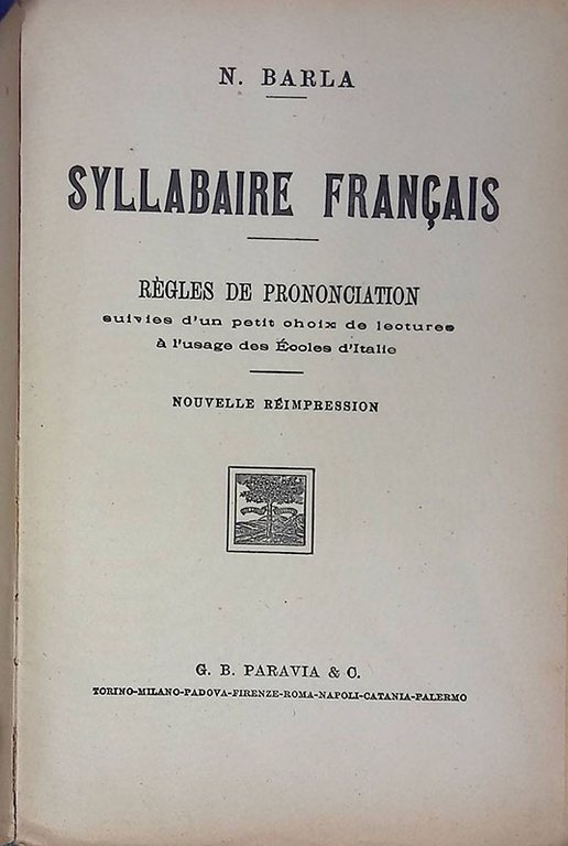 Syllabaire francais. Regles de prononciation. Suivies d'un petit choix de lecture a l'usage des ecoles d'Italie | Libri antichi e moderni | Barla N.