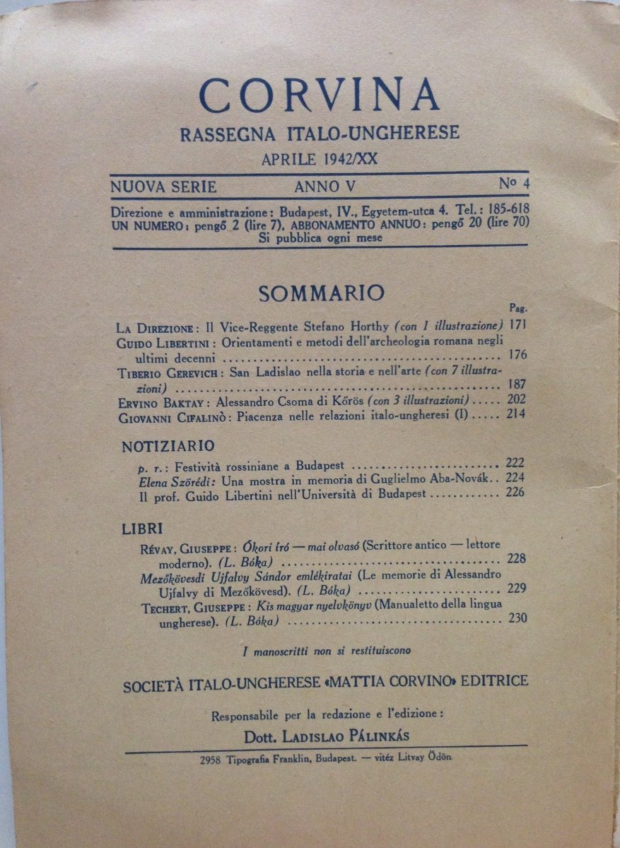 T. Gerevich L. Zambra Corvina Rassegna Italo Ungherese N. 4 Anno 5 1942