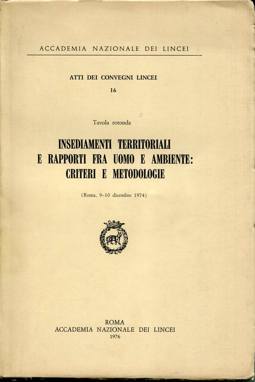 Tavola rotonda : Insediamenti territoriali e rapporti fra uomo e ambiente : criteri e metodologie, Roma, 9-10 dicembre 197