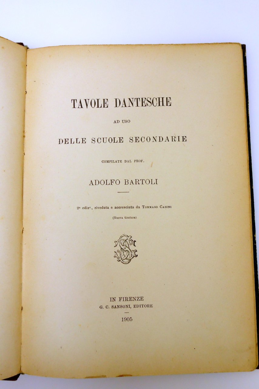 TAVOLE DANTESCHE AD USO DELLE SCUOLE SECONDARIE BARTOLI CASINI SANSONI 1905 | Libri antichi e moderni |