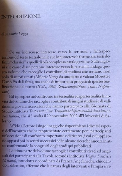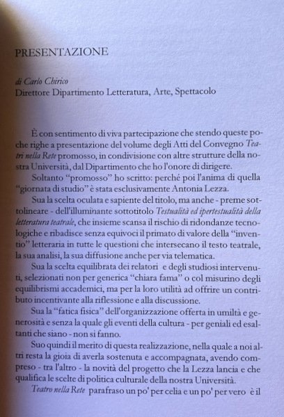 TEATRI NELLA RETE. TESTUALITÀ E IPERTESTUALITÀ DELLA LETTERATURA TEATRALE. A CURA DI ANTONIA LEZZA | Libri antichi e moderni |