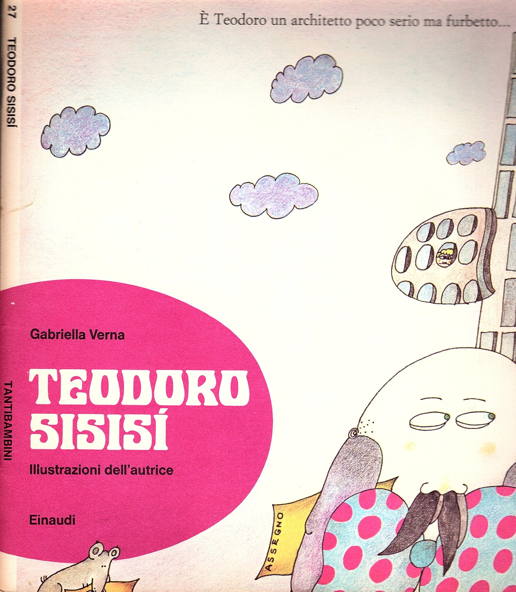 In-8° grande quadrato (24x23cm) brossura editoriale spillata figurata con titoli e paratesti ai piatti. Pp (28) di testo tutte figurate con disegni a colori anche a piena pagina. Collana TANTIBAMBINI diretta da Bruno Munari, 27. Più che buon esemplare. Edizione originale di questa racconto satirico figurato con protagonista un architetto carrierista.