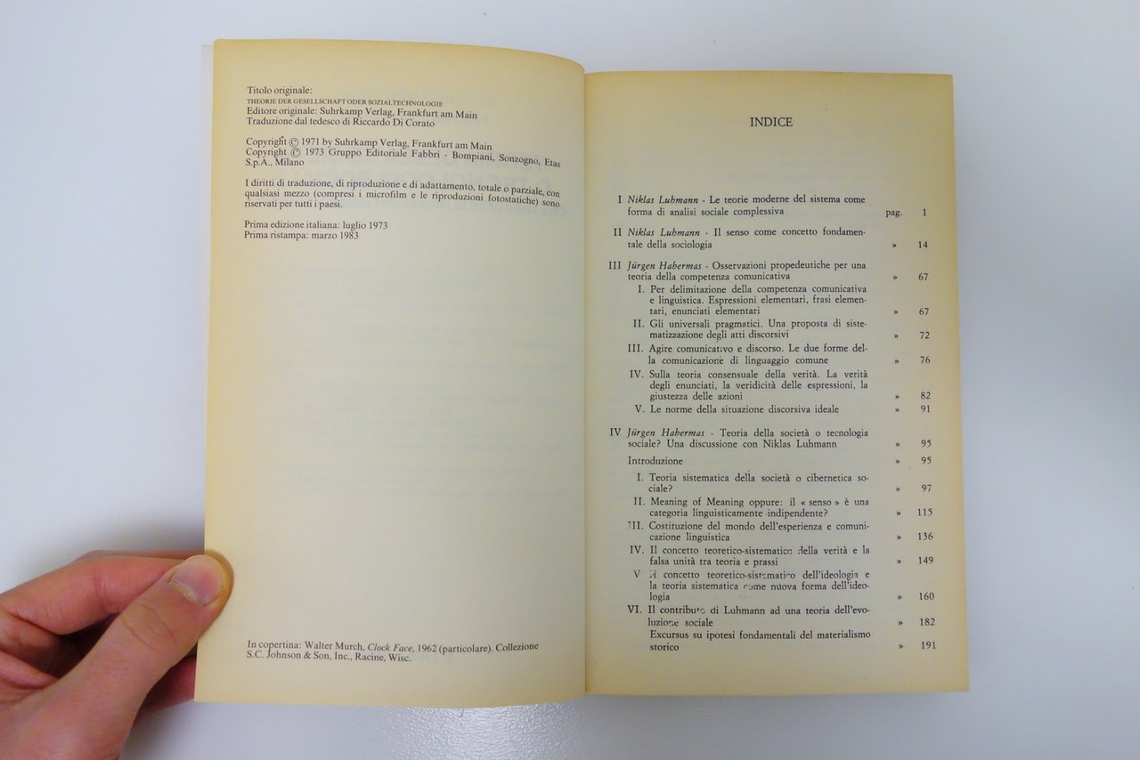 TEORIA DELLA SOCIETA' O TECNOLOGIA SOCIALE HABERMAS LUHMANN ETAS 1983 | Libri antichi e moderni |