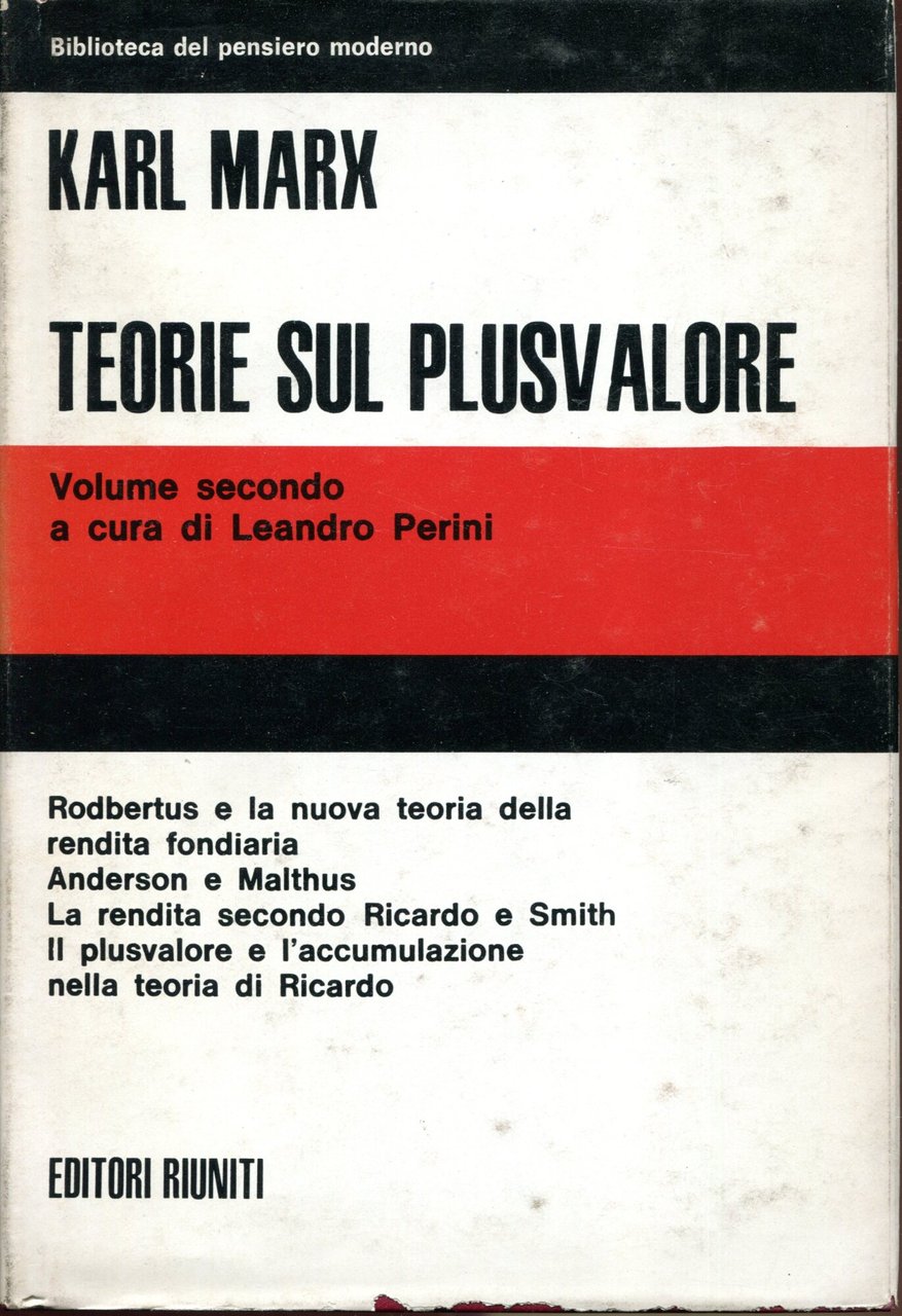 Teorie sul plusvalore. Libro quarto del Capitale. Volume secondo, a cura di Leandro Perini