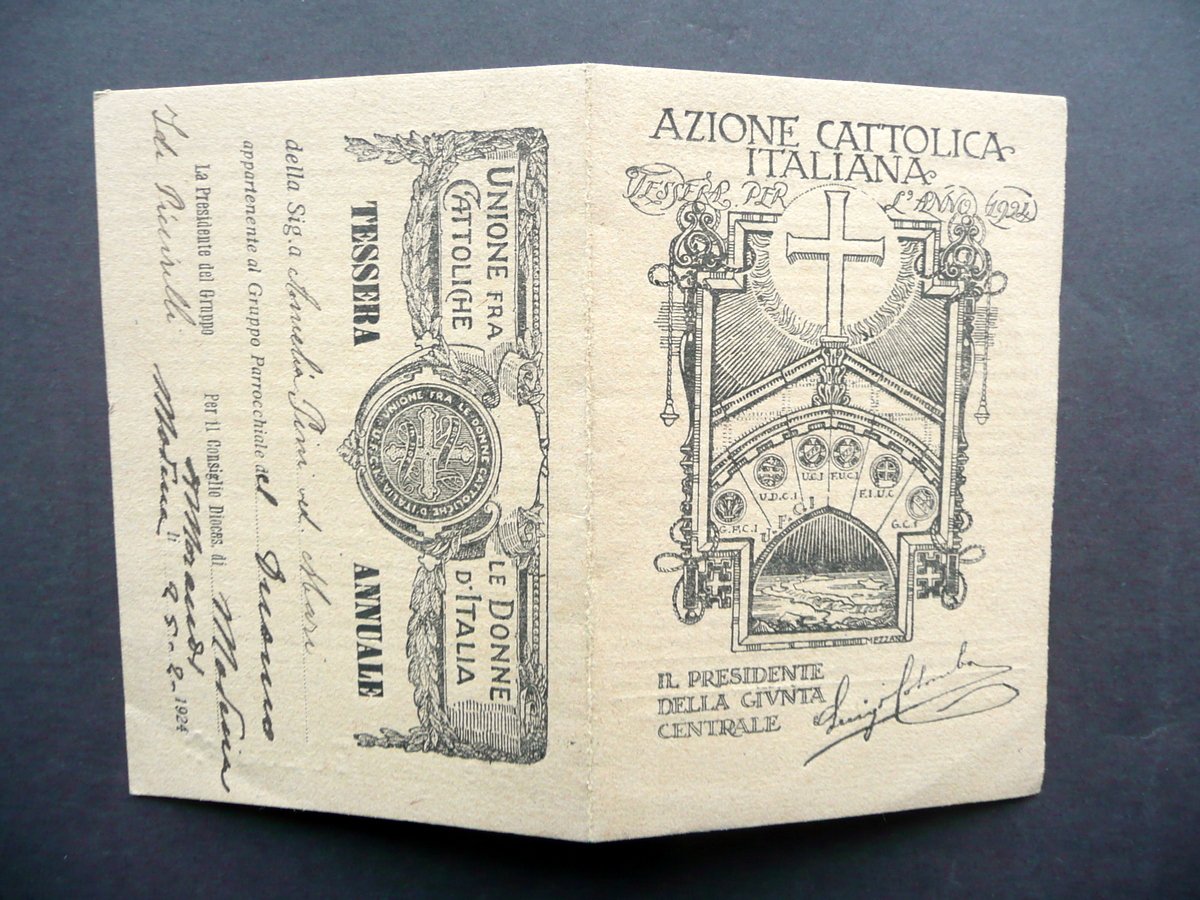 Tessera Azione Cattolica Italiana Anno 1924 Unione Donne Cattoliche Mezzana | Libri antichi e moderni |