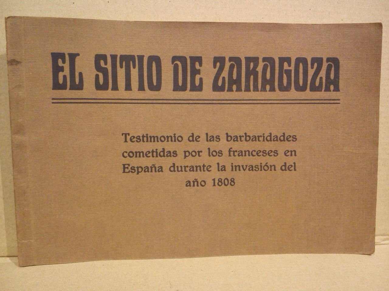 [S.l. Zaragoza?], [s. a., ca. 1908].- 20 folios sin paginar, siendo el 1º de texto y los 19 restantes de ilustraciones de pinturas y grabados referentes al sitio histórico, que llevan una parte de texto al pie de cada uno; 8º apaisado (15 x 23 cm); Papel couchet; Cartulina Ed. flexible.- Tras el título se presenta la Proclama del general Palafox a los zaragozanos.* ARAGÓN