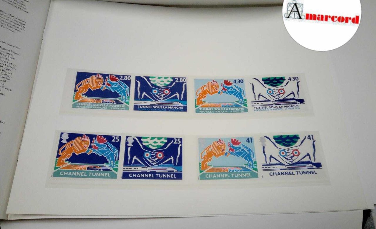 Pubblicazione commemorativa, History of the Channel Tunnel. Two pair each UK & French issued stamps commemorating the Channel Tunnel. Nell'ultima di copertina serie di 4 francobolli commemorativi come da foto.