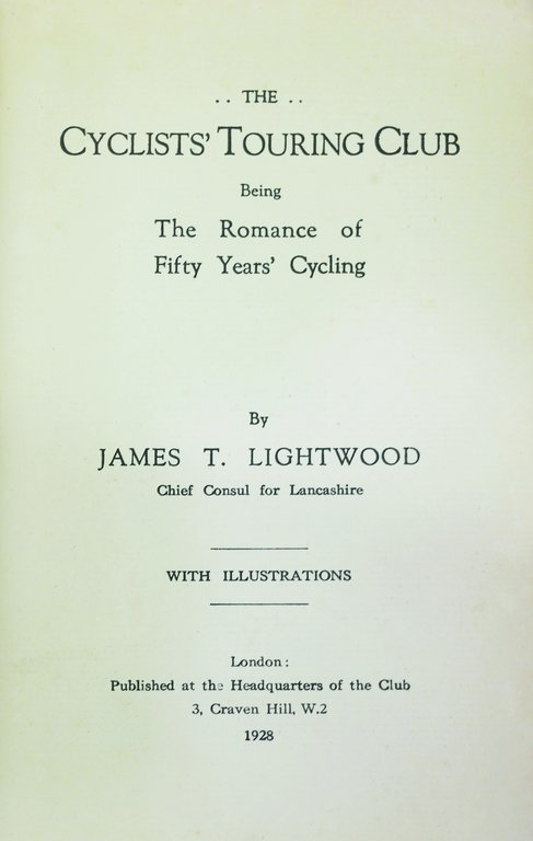 THE CYCLISTS' TOURING CLUB. - Being the romance of fifty years' cycling. | Libri antichi e moderni | LIGHTWOOD James T