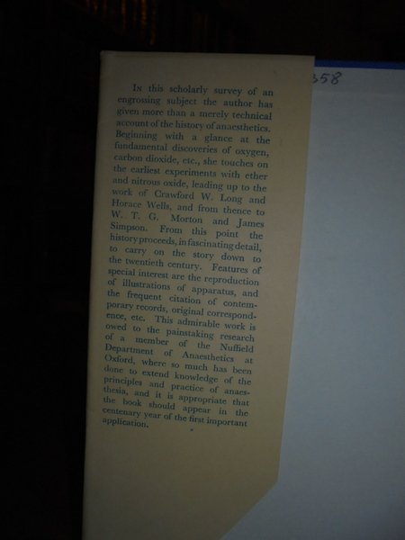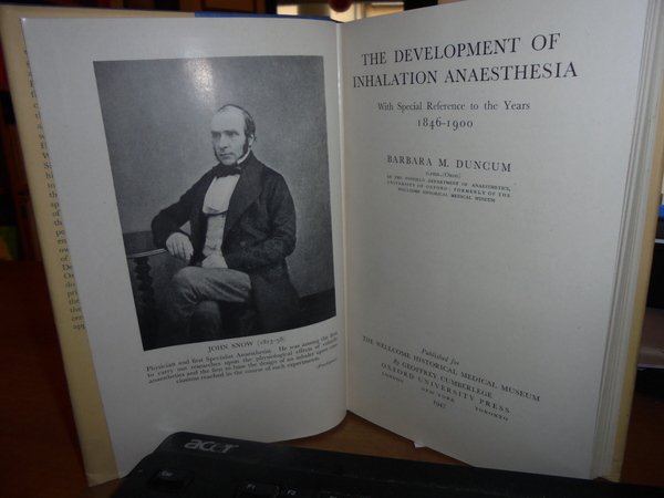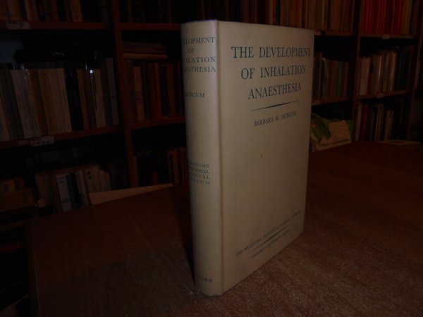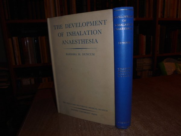 BARBARA M. DUNCUM. London - New York - Toronto, The Wellcome Historical Medical Museum. Oxford University Press, 1947. The Development of Inhalation Anaesthesia. With Special Reference to the Years 1846 - 1900. In-8°, tela azzurra edit. con titolo in oro al dorso e sovracopertina. xvi, 640 pp. con 153 figure nel testo. Ottimo esemplare. Uff. E - IV - 4 - 2