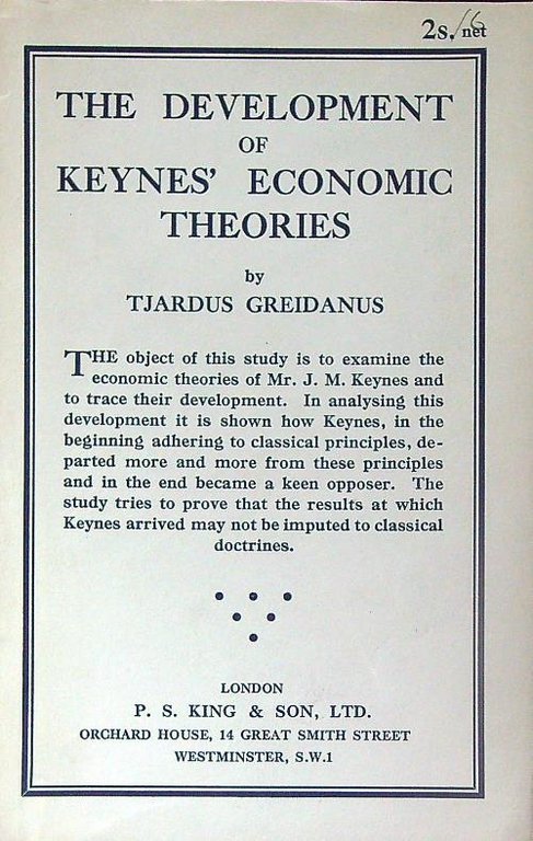 The Development of Keynes' Economic Theories | Libri antichi e moderni | Greidanus, Tjardus