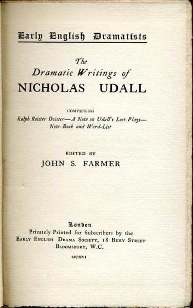 The Dramatic Writings of Nicholas Udall 1506-1566 | Libri antichi e moderni | Farmer, John S. (Editor)