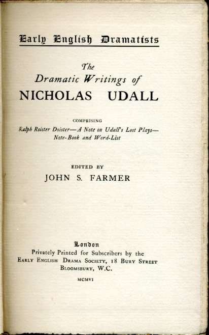 The Dramatic Writings of Nicholas Udall 1506-1566