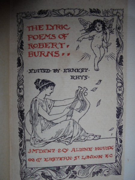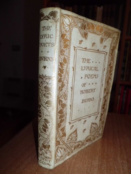 BURNS, Robert. London, J.M. Dent & Aldine House, s.d. (fine '800). In - 16°, bella legatura edit. in pergamena molle con unghie, titolo e bordura decorata in oro sul piano anteriore, dorso con titolo e fregi aurei. xxiv, 243, (1) pp. Frontespizio istoriato con ritratto dell' autore f.t. Edizione in carta a mano di soli 250 esemplari., volume intonso. Neg. mob. 6.