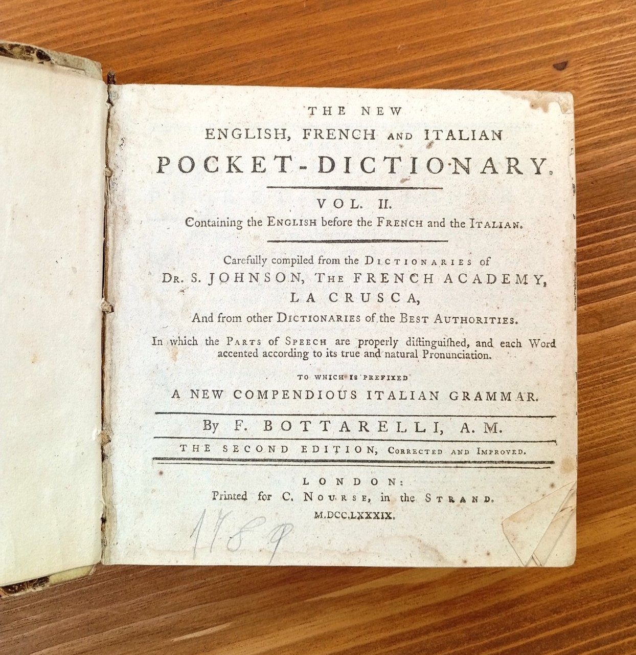 The new Italian, English, and French Pocket-Dictionary. Vol. II: Containing the English before the French and the Italian | Libri antichi e moderni | Bottarelli, Ferdinando
