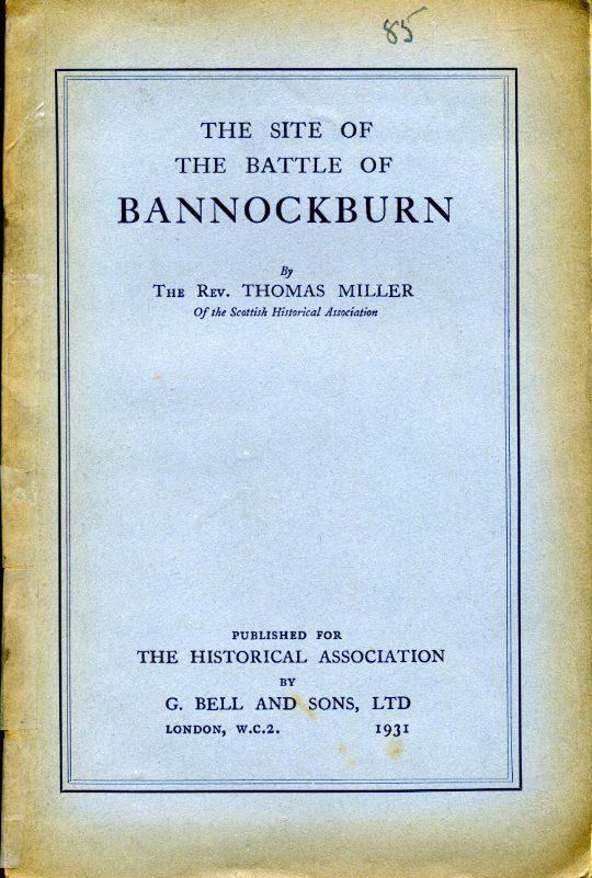 No 85 on front cover. No other marks or inscriptions. Clean pages in booklet form with slightly sunned boards, rusty staples and covers loose and taped together. Large fold-out coloured map (25 x 28 inches) of the site at the end in excellent condition. 28pp. An account of Bannockburn and the site where the battle was fought. Historical Association Leaflet No 85. Scarce.