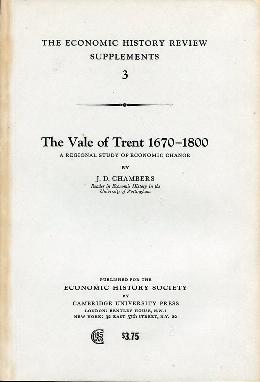 No marks or inscriptions. No creasing to covers or to sunned spine. A very clean very tight copy with bright unmarked very slightly rubbed boards and no bumping to corners. Fold-out map in excellent condition. 63pp. A study of agriculture, industry, employment, poverty, disease and general economic issues in part of England's East Midlands in the 17th and 18th centuries.