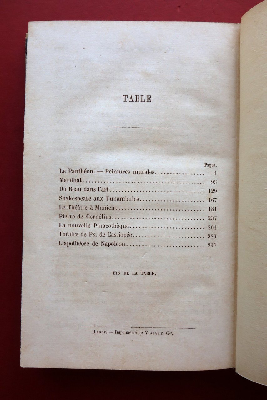 Michel Levy Freres, Paris 1856; cm 18x11,5; pp. [4]-304; pregevole legatura d'epoca in mezza pelle, con titolo e fregi impressi in oro al dorso con nervature; piatti marmorizzati; tagli azzurri. Prima edizione. Ai contropiatti vecchia firma di possesso e annotazioni del precedente proprietario, il critico d'arte G. Bariola.
