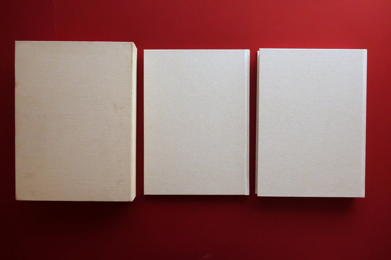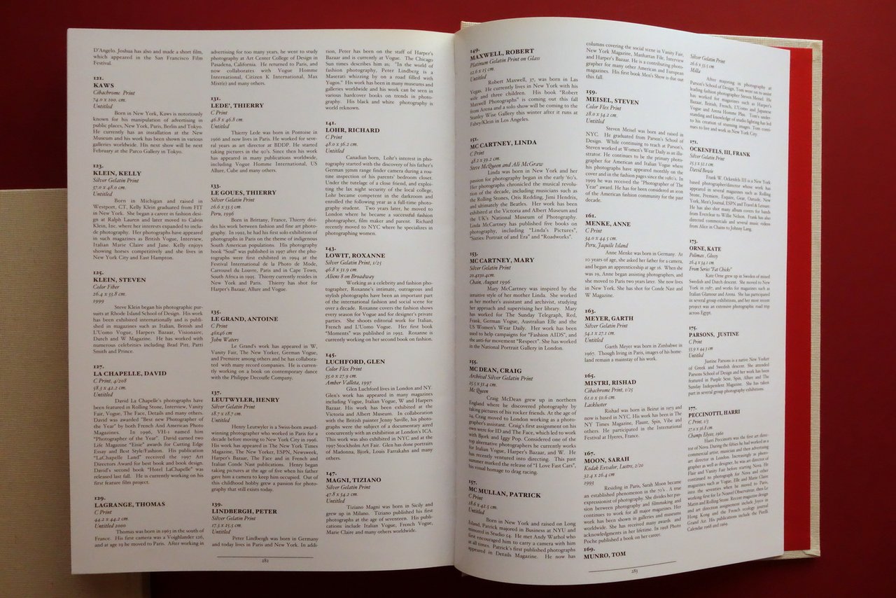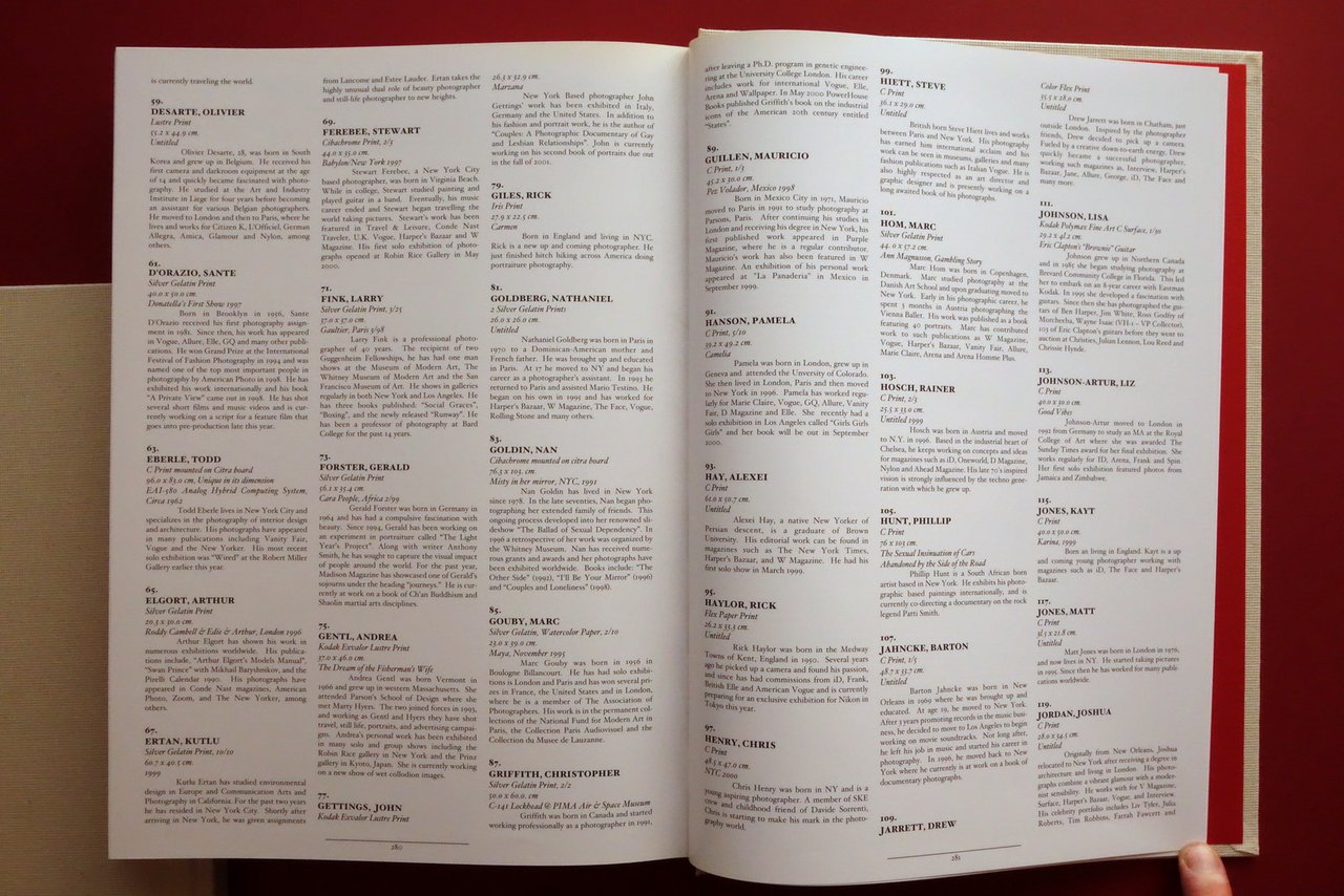 AA. VV., Giorgio de Mitri e Francesca Sorrenti (a cura di), † Tomo - Photoart. In memory of Davide - opera completa in 2 volumi Arbe Industrie Grafiche, Modena 1996-1997; cm 34,5x25; pp. 112 con 100 belle illustrazioni fotografiche a colori a piena pagina e su doppia pagina (volume I - in memory of Davide); pp. 288 con 137 belle illustrazioni fotografiche a colori a piena pagina, realizzate da celebri fotografi dell'epoca quali David Lachapelle, Tommaso Lagrange; Amy Arbus; Bruce Weber, Terry Richardson, Peter Lindbergh, Justine Parsons, ecc. Legatura in tutto cartonato ed. telato muto. Opera completa in due volumi, inseriti entro cofanetto ed. in cartonato telato. Edizione fuori commecio di 1300 copie (la nostra non presenta numerazione). Testi in lingua inglese. Condizioni di conservazione Esemplare in ottime condizioni con minime tracce di utilizzo. Interni dei volumi in ottime condizioni. Cofanetto ed. anch'esso molto ben conservato con solamente pochissimi trascurabili accenni di sporco. Rara pubblicazione realizzata in ricordo della scomparsa di Davide Sorrenti, promettente e talentuoso fotografo italiano che visse la maggior parte della sua vita negli USA, a New York. Sorrenti, affetto da talassemia - maior o anemia di Cooley, scomparve a soli 21 anni. La pubblicazione Ë suddivisa in un tomo che raccoglie 100 belle illustrazioni fotografiche di scatti del giovane Sorrenti, e da un secondo ampio tomo che raccoglie 137 illustrazioni fotografiche a colori di fotografie eseguite da celebri fotografi dell'epoca. Tali fotografie, nella loro versione originale, furono appositamente realizzate per la mostra commemorativa Photoart. In memory of Davide" del 2000 e il ricavato delle loro vendite devoluto alla Cooley Anemia Fundation Inc. per la ricerca sulla anemia di Cooley. Per un elenco dei fotografi coinvolti nell'iniziativa vedi foto indice. Bellissima raccolta fotografica edita in 1300 esemplari. † SETT229.L24991 N "
