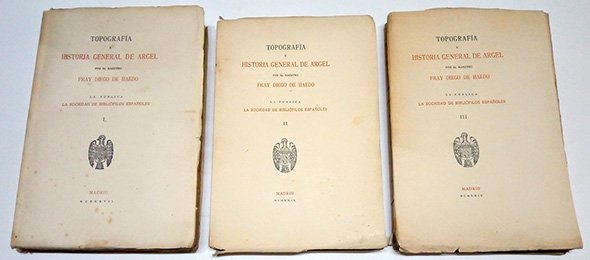 Topografía e Historia General de Argel (1612), por el maestro Fray Diego de Haedo. Prólogo de Ignacio Bauer y Landauer. | Libri antichi e moderni | [Sosa, Antonio De.].