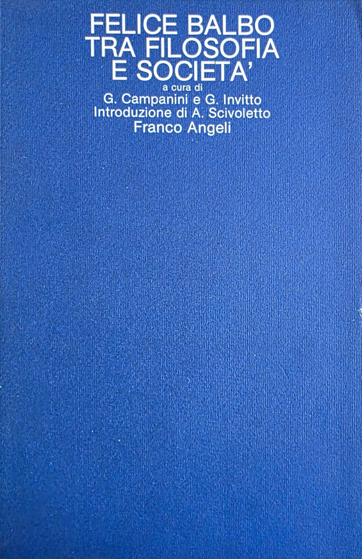 TRA FILOSOFIA E SOCIETÀ | Libri antichi e moderni | BALBO FELICE, ,BALBO FELICE