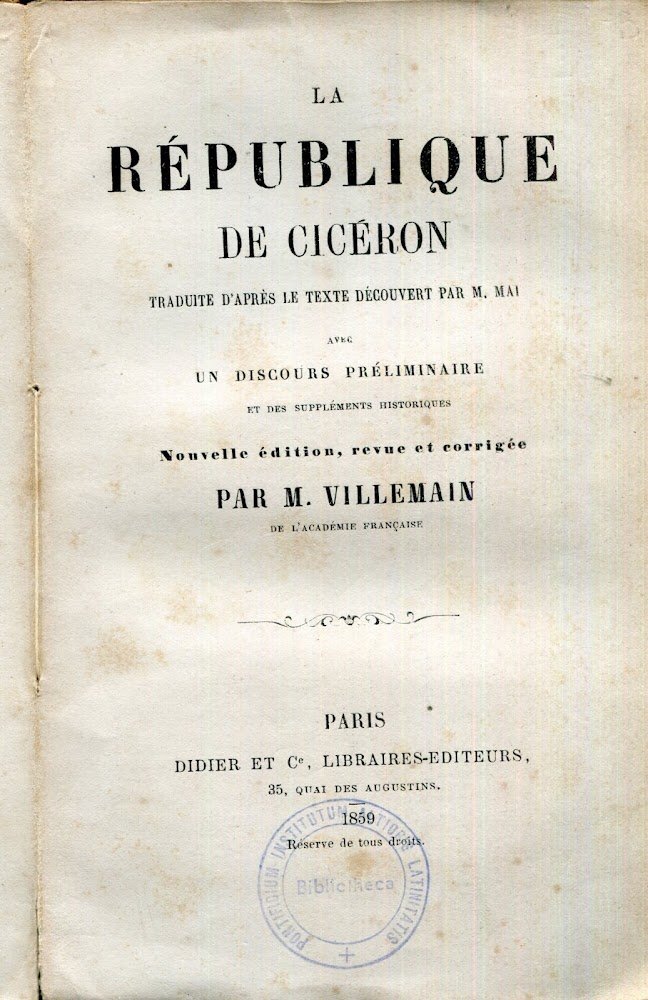 traduite d'apres le texte decouvert par M. Mai ; avec un discours preliminaire et des supplements historiques | Libri antichi e moderni | Cicero, Marcus Tullius, ,Cicero, Marcus Tullius