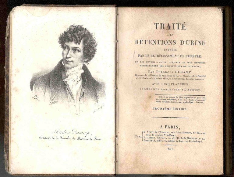 Traité des rétentions d'urine causées par le rétrécissement de l'urètre, et des moyens à l'aide desquels on peut détruire complètement les obstructions de ce canal. Avec 5 planches; précédé d'un rapport fait à l'Institut. Troisième édition | Libri antichi e moderni | Ducamp, Théodore