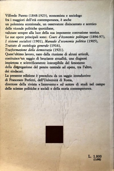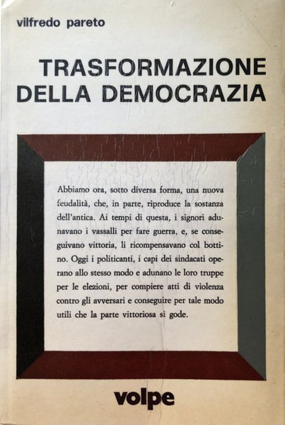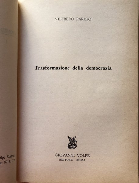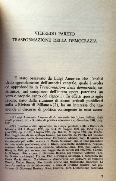 TRASFORMAZIONE DELLA DEMOCRAZIA | Libri antichi e moderni | Vilfredo Pareto