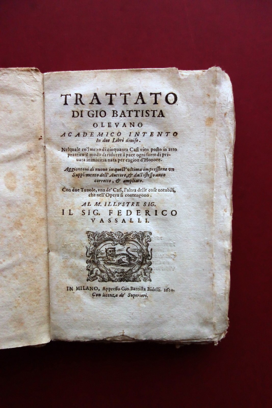 Trattato di Giovan Battista Olevano Academico Intento Bidelli Milano 1620