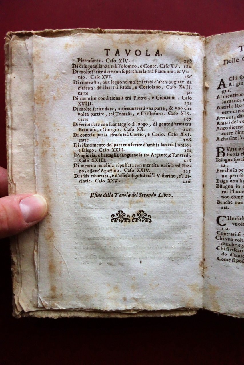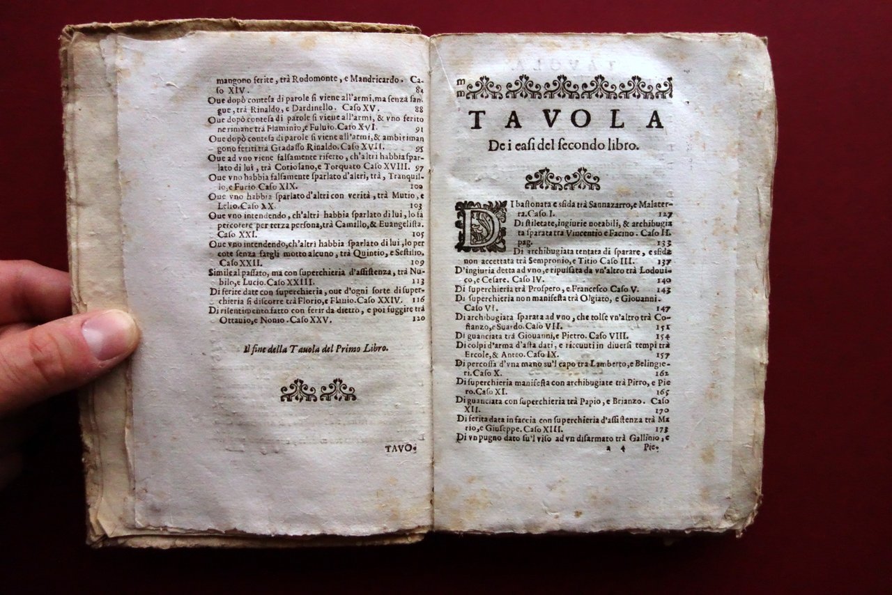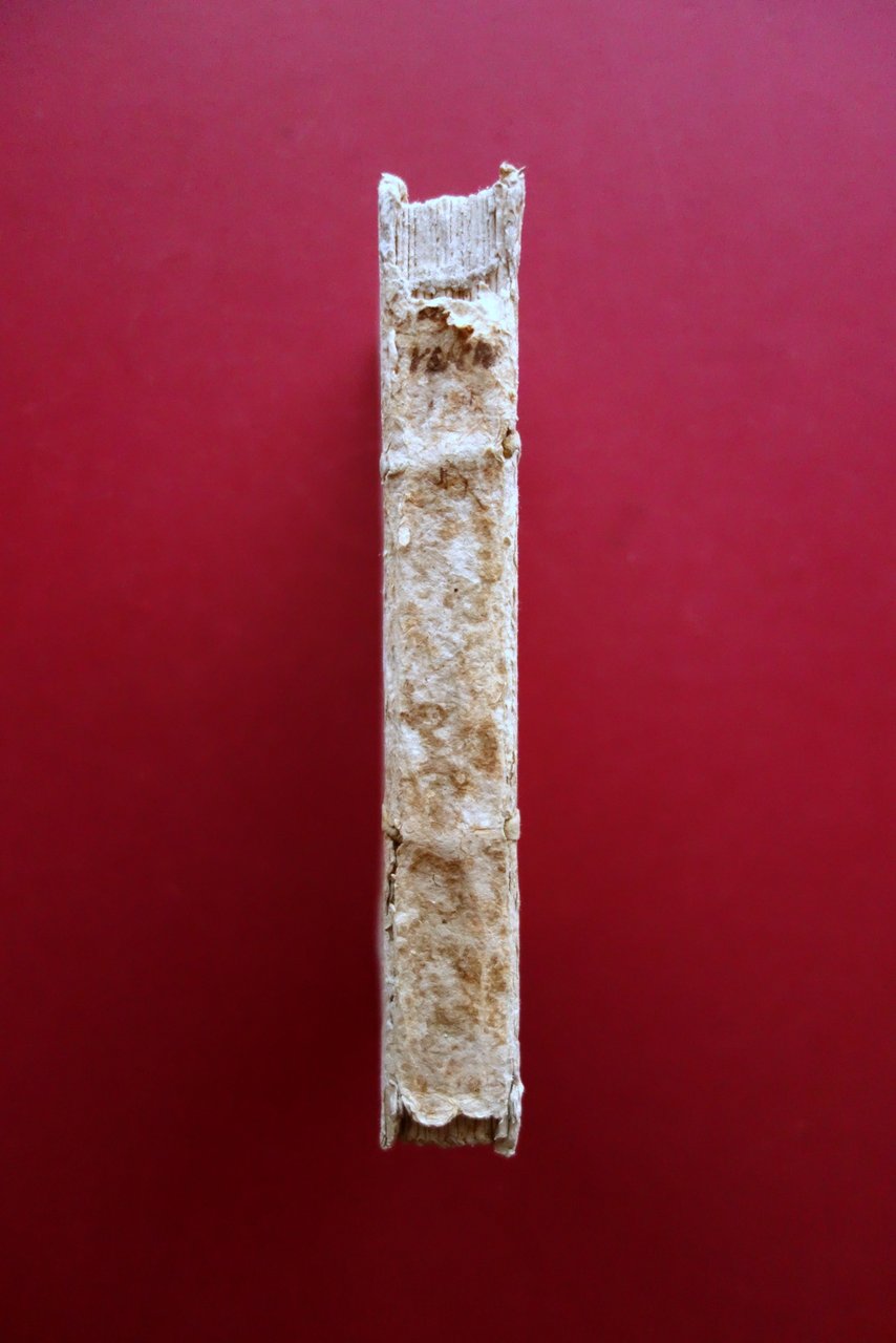 Buone condizioni con tracce d'uso e del tempo, coperta con un paio di piccole mancanze alle cuffie, dorso e margine inferiore con leggere ombre di gore che, nel caso di quelle al margine inferiore, interessano anche le pagine senza coinvolgere il testo. Leggero foxing.