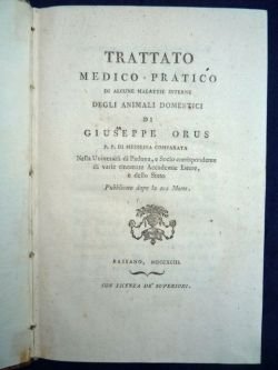 Trattato medico-pratico di alcune malattie interne degli animali domestici [.]. | Libri antichi e moderni | Orus Giuseppe.