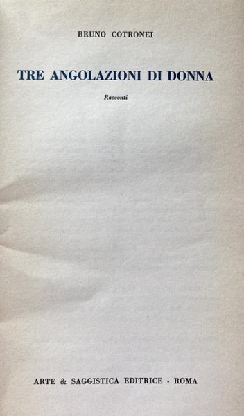 TRE ANGOLAZIONI DI DONNA | Libri antichi e moderni | Bruno Cotronei