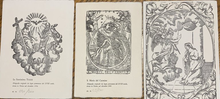 Tre biglietti d'auguri con xilografie da legni originali