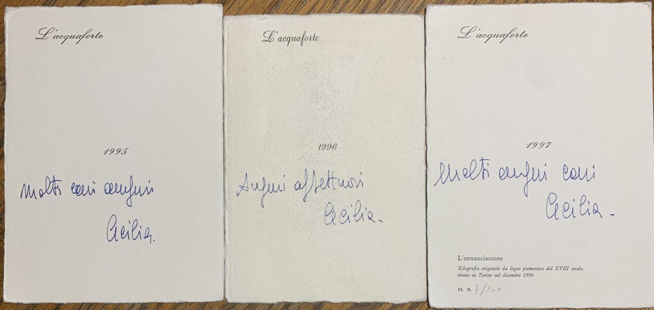 Tre biglietti d'auguri con xilografie da legni originali | Libri antichi e moderni | L'' acquaforte Via Principe Amedeo 29/c Torino, ,L'' acquaforte Via Principe Amedeo 29/c Torino