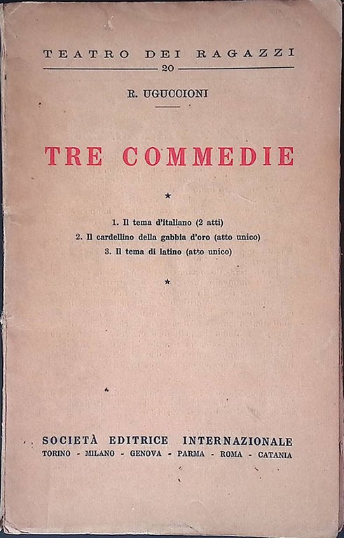1. Il tema d'italiano, due atti. 2. Il cardellino della gabbia d'oro, atto unico. 3. Il tema di latino, atto unico, 88 p., f.to cm 19x12, copertina flessibile. Buone condizioni.