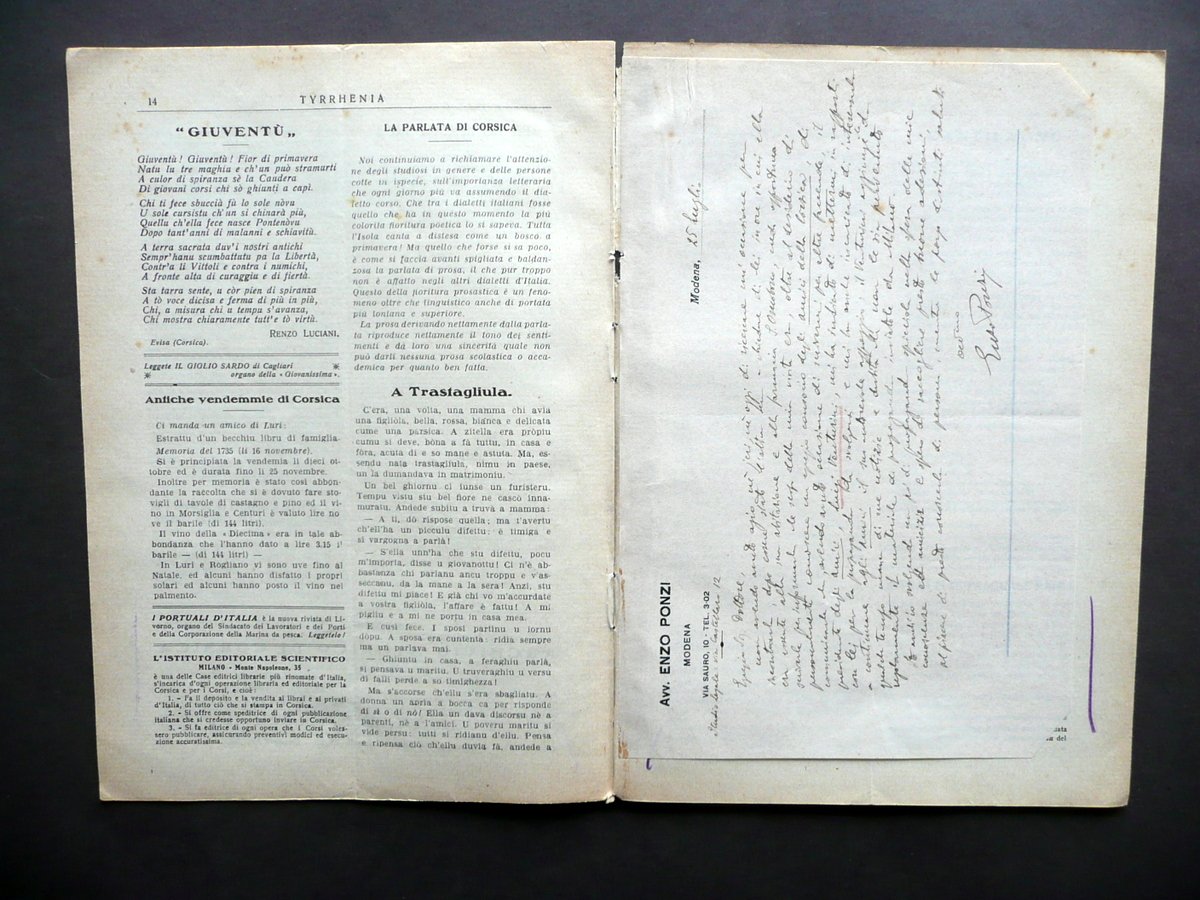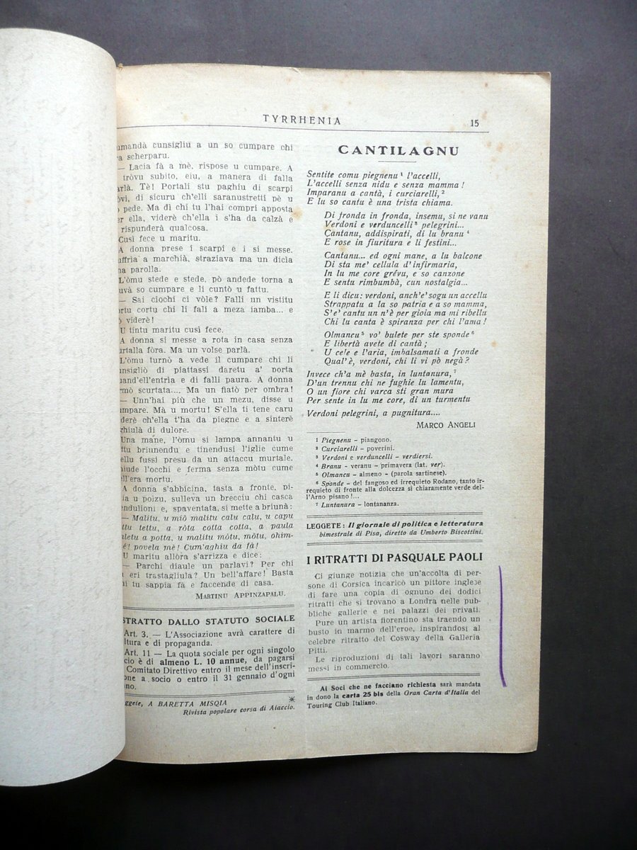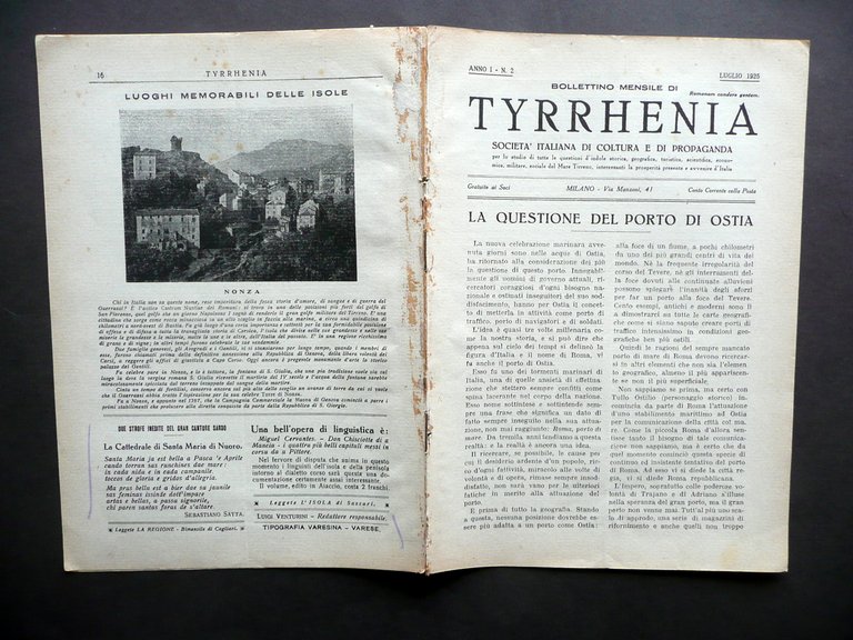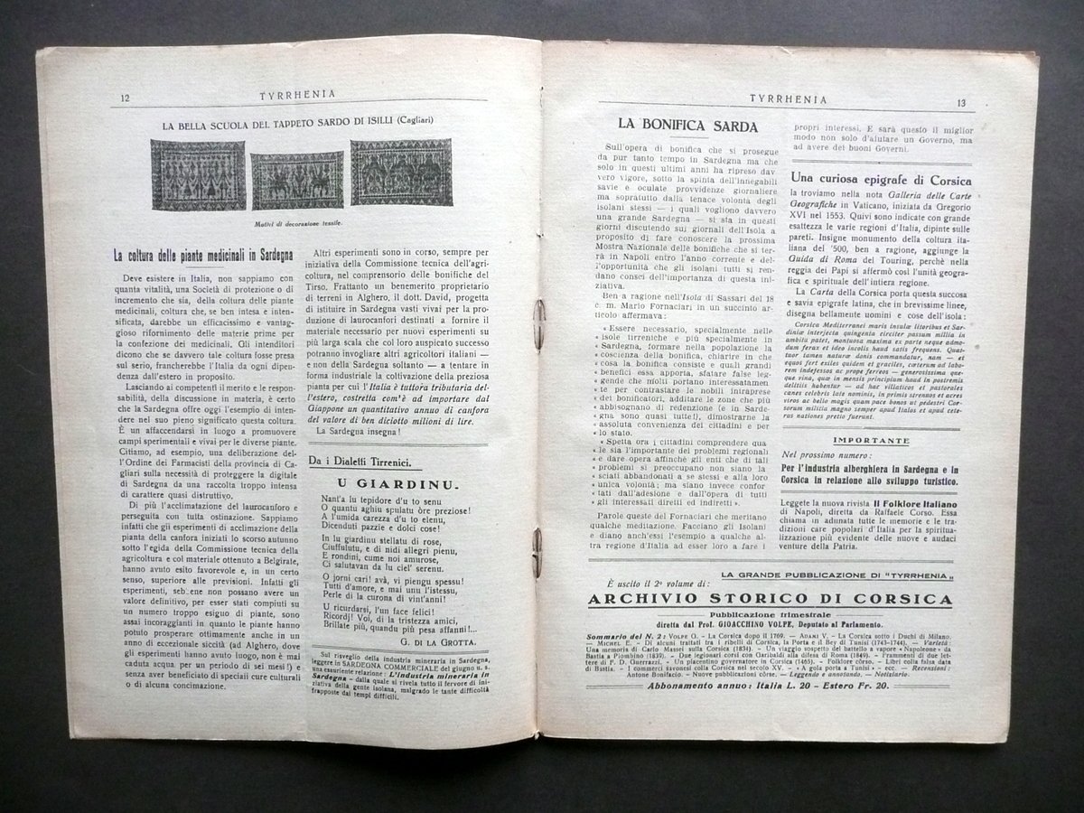 Tyrrhenia Anno I N. 2 Milano Luglio 1925 Sardegna Corsica Costa Tirreno Completo | Libri antichi e moderni |
