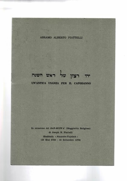 Un'antica usanza per il capodanno; pubblicato in occasione del Bar-Mizw A' (maggiore religiosità) di Joseph R. Piattelli 15 sett. 1979.